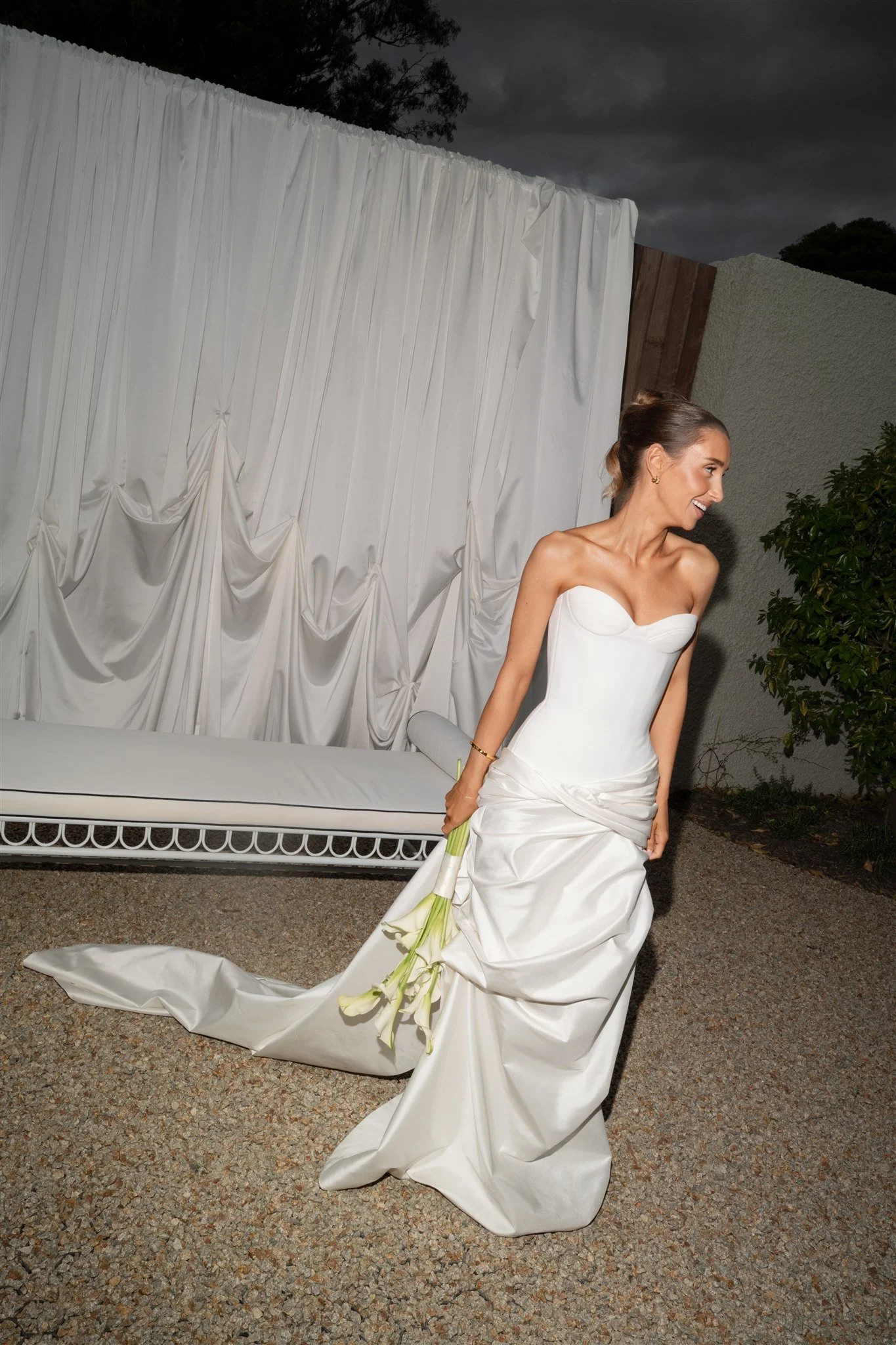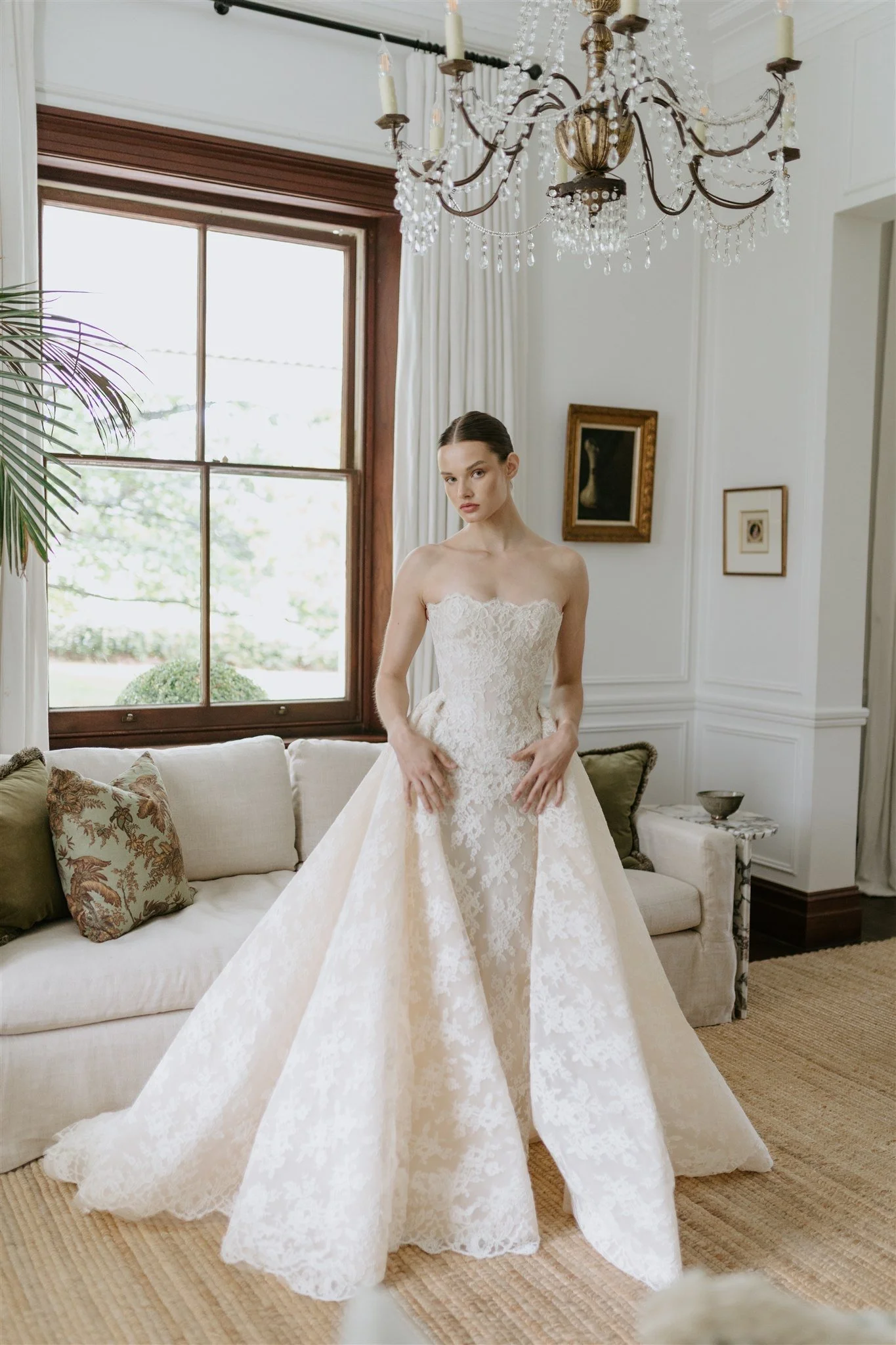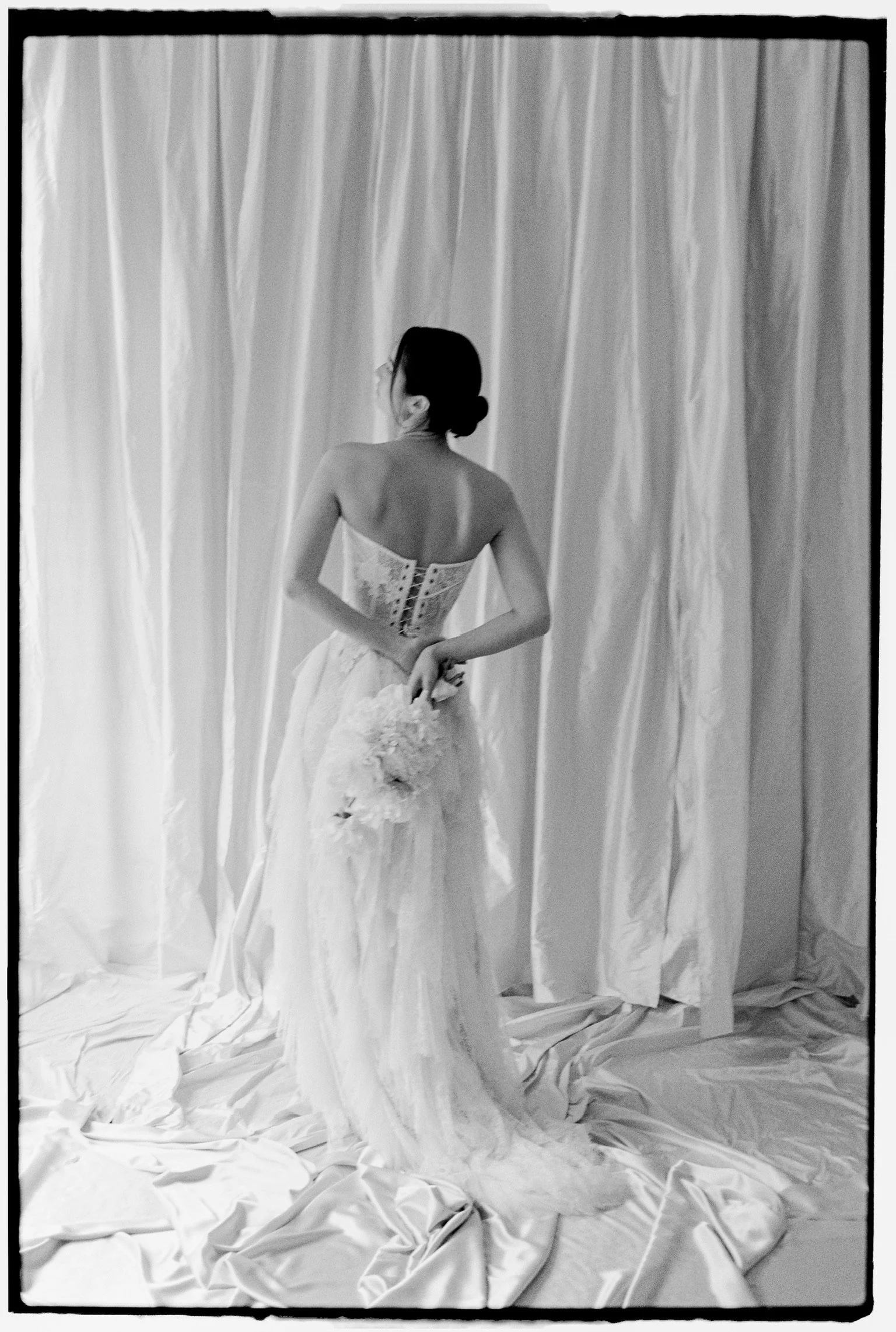 Over three to five fittings we’ll perfect your gown to you; adjusting corstetry, adding more French lace, draping silk to sit perfectly on your waistline and frosting the look with the softest veil.